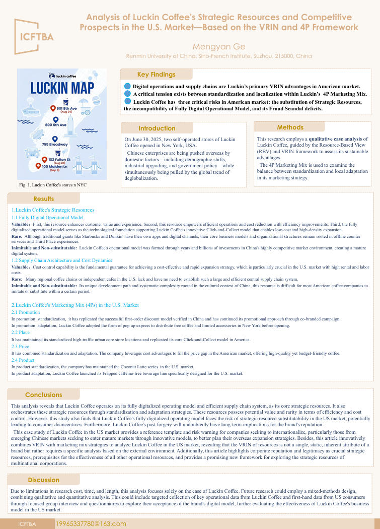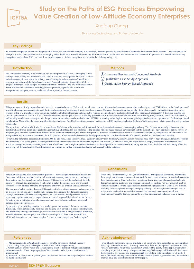 The online session of the ICFTBA 2025 will be held on December 12, 2025. We invited authors of qualified papers to deliver poster presentations. Here are some posters presented during the poster session: